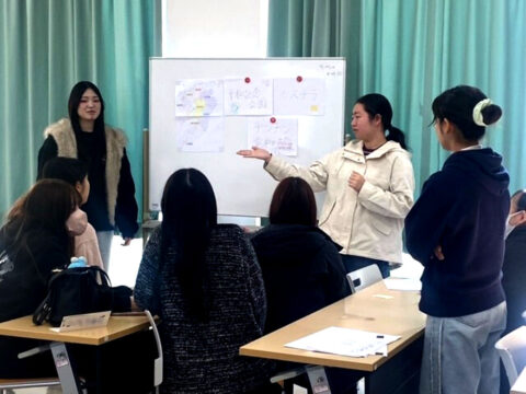 英語で授業を進めたり、複数の教員が連携して授業を組み立てたりするのは、他教科とは少し違った難しさがあります。学生たちは、まず1回授業を実施し、振り返りを踏まえて翌週に改善した授業をもう一度行いました。