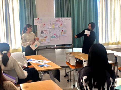 「幼児教育実習指導」の授業は、幼稚園での実習に向けて、実習前の準備や実習後に実習の中での学びを振り返り、更に良い保育ができるように学んでいく授業です!