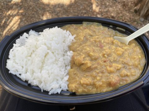 「筑女インドカレー」100食を作って住民の方々と交流し多くの住民の方が参加していただきました。