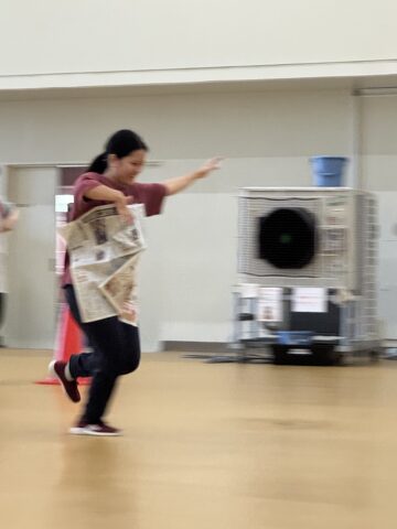 一方、子ども役の学生は子どもになりきって、思い切り体を動かしながら遊びを体験。