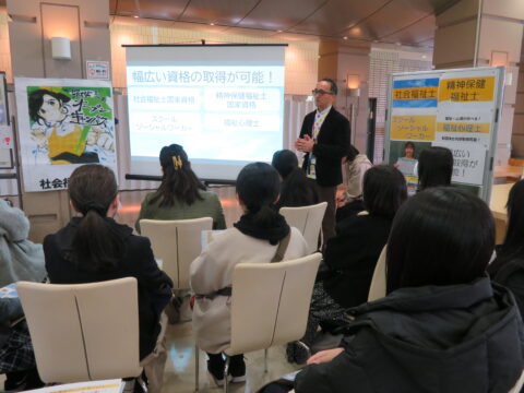 3月7日(土)本学において、3月オープンキャンパスを行いました。 筑女・社会福祉の魅力である、 「学生と教員の距離が近い」 「韓国やフィリピンなどの充実した海外研修」 「障害の有無に関係がなく同じ環境での学び」 「不登校支援や子ども食堂などの地域活動」など 多くの内容を高校生にお伝えしました。 次回は4月18日(土)にオープンキャンパスを行います。 ぜひご参加をお待ちしています!