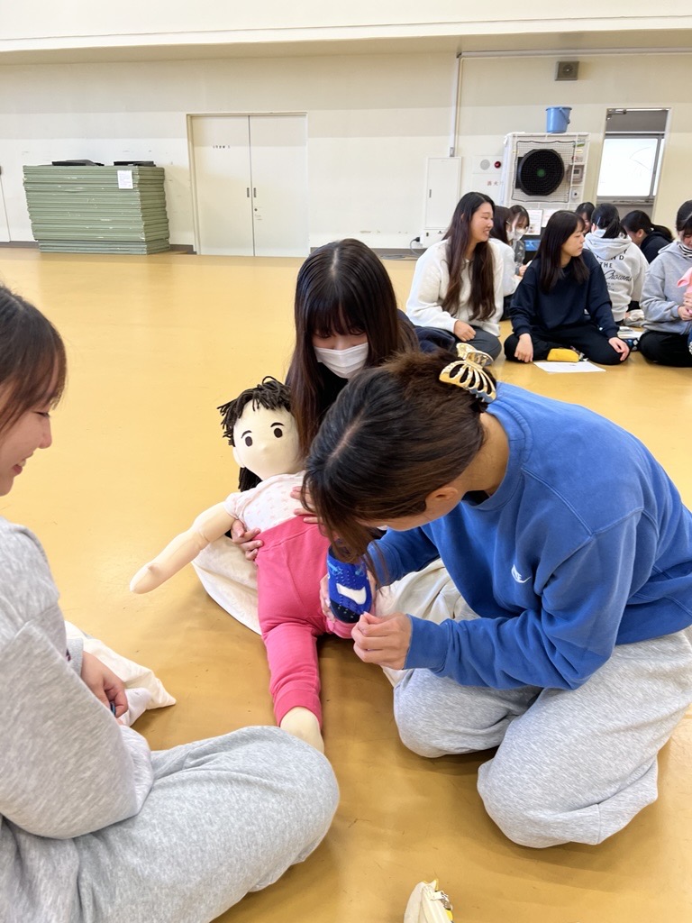 加えて、1・2歳児の衣服の着脱を援助する方法について、赤ちゃん人形を使いながら実践的に学びました。