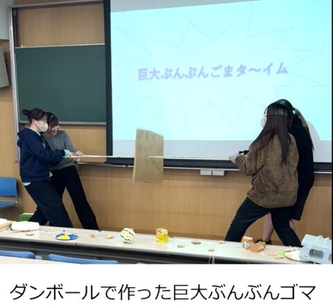 折り紙飛行機、フリスビー、凧、魚釣り、トントン相撲、ぶんぶんゴマ…など、子どもたちが夢中になる“遊びの教材”を題材に、グループで研究して発表します。