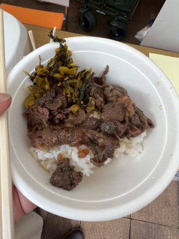 地域活性化に取り組む東峰村の美味しい棚田米を使ったジビエ丼は、大変好評でした。