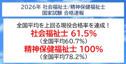 福岡の女子大学|筑紫女学園大学 【速報】「社会福祉士・精神保健福祉士国家試験 合格発表」 - 2026年03月04日 - 昨日、国家試験の合格発表があり、本学社会福祉コースは全国平均を上回る好結果でした。 合格した4年生の皆さん、おめでとうございます!